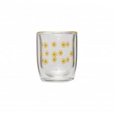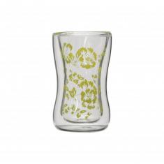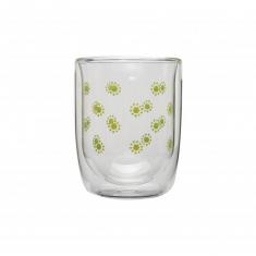 high borosilicate double wall glass cup with decal