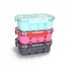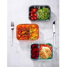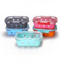 Glass food container box with silicone sleeve