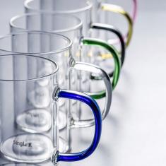 High Borosilicate Glass Cup/Mug with Colored Colorful Handle