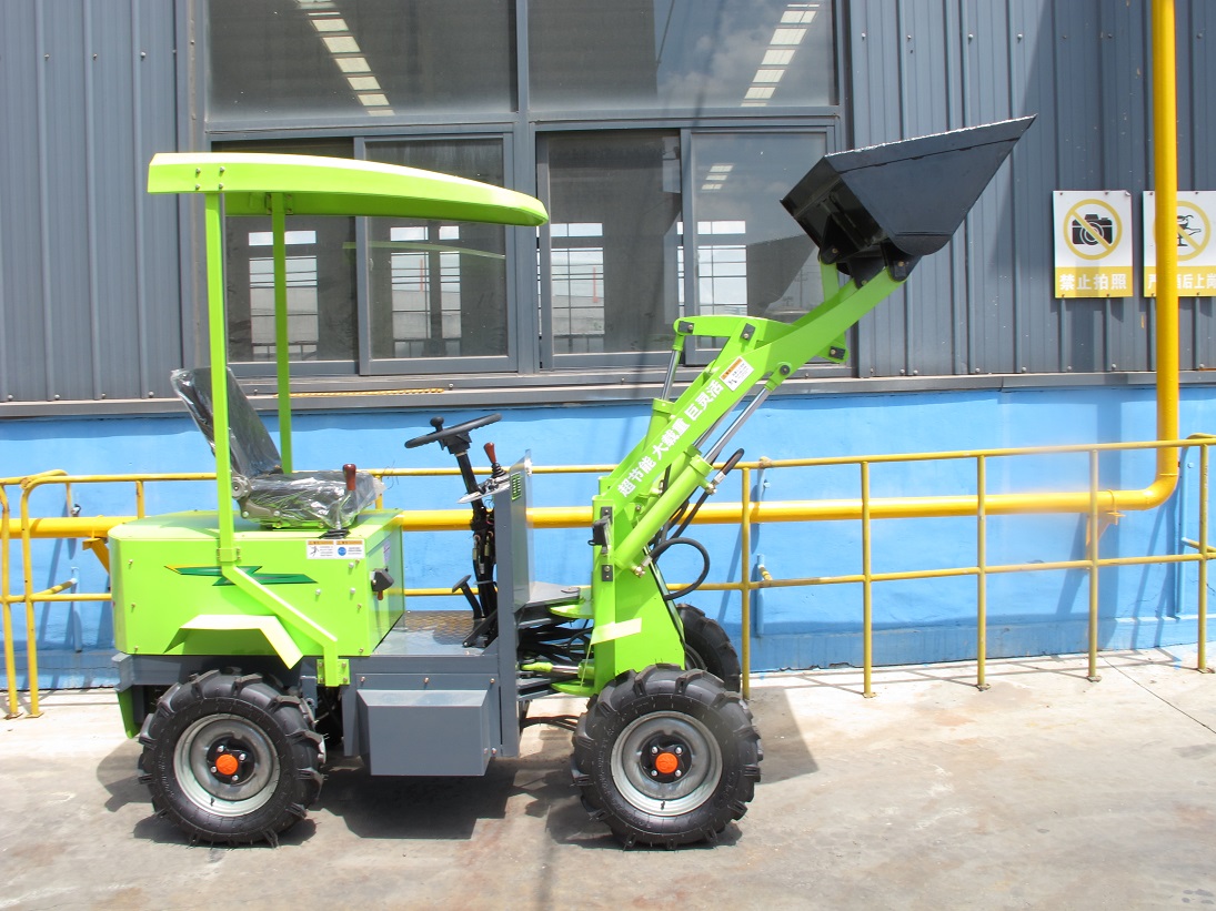 JZ-II01 electric miniature wheel loader is a heavy equipment machine used in construction to move or load materials such as soil, rock, and demolition debris, etc. into or onto another type of machinery (such as a dump truck, conveyor belt, feed-hopper, or railroad car). Miniature wheel loader is suitable for narrow space and a front end loader is a multi-use piece of equipment. Using the power of a front end loader to dig a hole can save hours of time in manual labor.