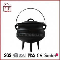 Cast Iron South African Potjie are made from pure grey cast iron and comes in many sizes. The potjies are pre-seasoned with an edible high quality wax and black painting, which make the pot more shine. Pots include a well-fitted lid and a heavy duty carrying handles. The round shape allows the heat to flow evenly around the sides and maintain liquids at the lowest point to keep food from burning. The lid has a deep lip for holding hot coals. Excellent for cooking over open fires or LP gas burners-. The 3 legs and round belly shape allows even heat distribution around the pot.