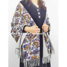 Pure cashmere brushed heavy shawl,double face printed,for Fall Winter cold weather