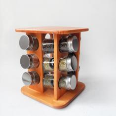 New design of glass spice rack set,rotary plastic frame beautiful style;