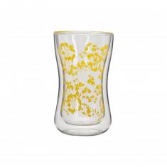 high borosilicate double wall glass cup with decal