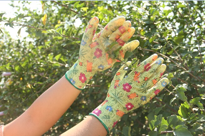 *Nitrile provide the palm protection and moistureproof *Excellent abrasion and grip in wet and light oil condition * many floral printed of shell and coating match available